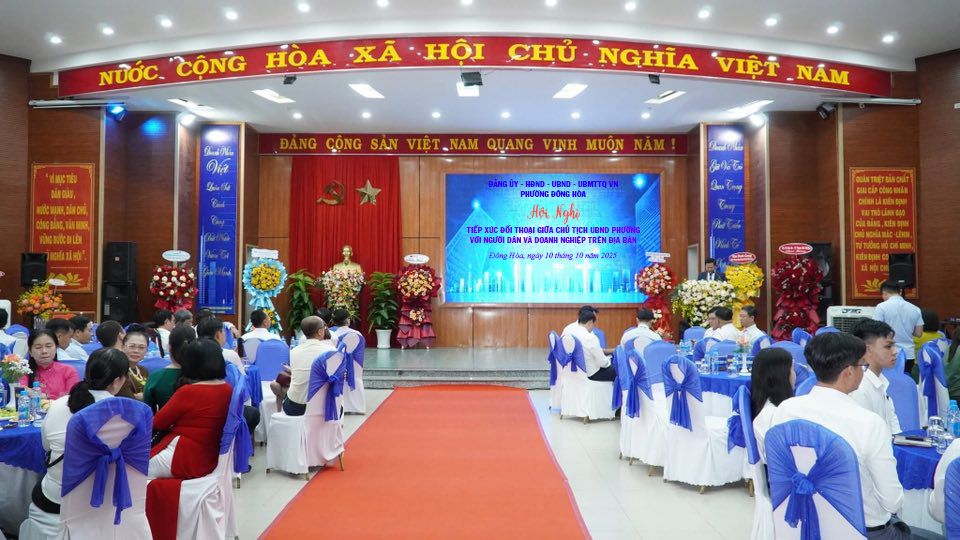 Chiều ngày 10/10, UBND phường Đông Hòa (TP.HCM) tổ chức chương trình đối thoại trực tiếp với doanh nghiệp và người dân trên địa bàn, nhằm lắng nghe ý kiến, tháo gỡ khó khăn và thúc đẩy hợp tác trong quá trình phát triển đô thị. Chương trình được tổ chức kết hợp trong khuôn khổ họp mặt kỷ niệm 21 năm Ngày Doanh nhân Việt Nam với sự tham dự của hơn 100 doanh nghiệp, doanh nhân tiêu biểu.
