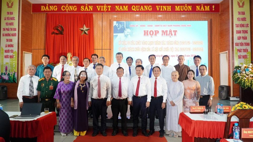 Sáng 28/8, Đảng ủy-HĐND-UBND-Ủy ban MTTQ Việt Nam phường Đông Hòa tổ chức họp mặt kỷ niệm 80 năm Cách mạng Tháng Tám thành công (19/8/1945 – 19/8/2025) và Quốc khánh nước Cộng hòa xã hội chủ nghĩa Việt Nam (2/9/1945 – 2/9/2025). Tham dự có các đồng chí: Anh hùng lực lượng vũ trang Nhân dân, Anh hùng lao động thời kỳ đổi mới, lãnh đạo phường Đông Hòa qua các thời kỳ, lãnh đạo phường, cán bộ, đảng viên, người hoạt động không chuyên trách các ngành, đoàn thể, các khu phố trên địa bàn, các chức sắc tôn giáo.