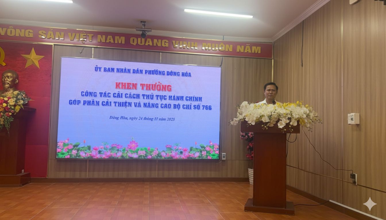 Sáng ngày 24/11/2025, UBND phường Đông Hòa tổ chức Hội nghị khen thưởng công tác cải cách thủ tục hành chính, ghi nhận những tập thể và cá nhân có nhiều đóng góp trong việc cải thiện và nâng cao Chỉ số 766 về giải quyết thủ tục hành chính trên địa bàn phường.